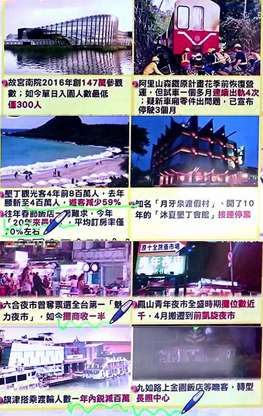 有臺媒總結了中南部觀光業(yè)如今面臨的9大慘境,包括墾丁觀光客從4年前的800萬到去年腰斬到400萬且今年春節(jié)訂房率更創(chuàng)“20年最低”;曾當選全臺第一“魅力夜市”的六合夜市現(xiàn)在只剩一半攤位;知名度假村和會館接連停業(yè)等……臺灣觀光救援服務協(xié)會理事長許高慶表示,如今對觀光業(yè)界只有“餓”字可以形容,大家過去“吃得好”,如今只能期待“吃得飽”。