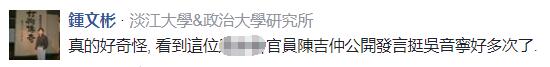 當然,在陳吉仲眼里“吳二貴”還是有不完美的地方,那就是“在對外溝通以及重要敏感議題的響應”時,吳音寧應該更立即。