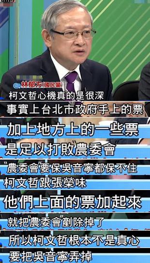 “主委”林聰賢力挺吳音寧,不僅夸贊說她上任以來農產品的平均價格都很穩定,還稱她是“進入都市叢林的政治菜鳥”;