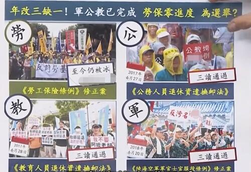 繼軍改21日“三讀”通過后,加上去年已完成“修法”的公務(wù)員及教師年金改革,臺(tái)灣軍公教的年改都已完成并確定7月1日將正式一同上路。但不少人卻質(zhì)疑,比起軍公教,勞保年改才是當(dāng)務(wù)之急吧,那為何關(guān)于勞改的《勞工保險(xiǎn)條例》修正案,迄今還被冰在“立法院”?