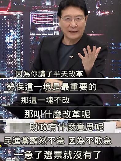 現(xiàn)任民進(jìn)黨“立法院”黨團(tuán)總召柯建銘也直言,沒有哪一個(gè)政黨想要趕快處理勞保年改,“這件事還沒有急到這種程度”。