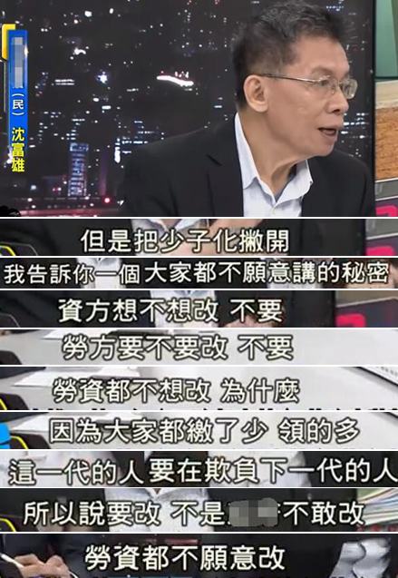 不僅如此,沈富雄也呼吁現(xiàn)在受年金制度影響最大的、沒有黨派的高級(jí)知識(shí)分子和年輕人,應(yīng)該勇敢挺身革命或造反,“不然所謂的‘白色力量’都是白講的”!
