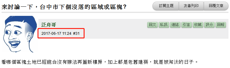 撩叔特別翻出了2017年6月的一個臺灣網友的帖子,標題叫做《來討論下,臺中市下個沒落的區域或區塊》: