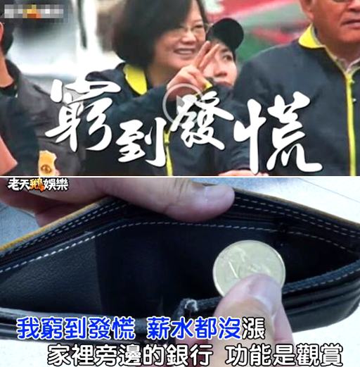 “窮到發(fā)慌,薪水都沒漲,每到月底的三餐,只剩下土壤”、“我窮到發(fā)慌,薪水都沒漲,平均一人賺五萬,都跟我無關(guān)”、“我窮到發(fā)慌,薪水都沒漲,家里旁邊的銀行,功能是觀賞”……