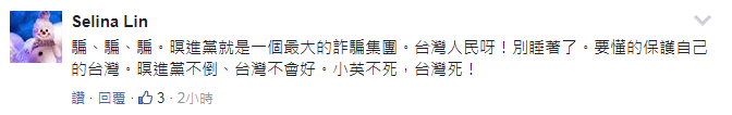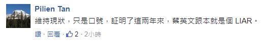 而針對蔡女士“寧折不彎”的做法,島內網友也紛紛為其豎起大拇哥,“請繼續‘維持現狀’,2020就讓你明白‘現狀為何’!”;還有人表示,“聽小英喊了兩年口號,現在才知道,原來她就是個騙子!”看到這里,二仔不免要吐槽一句:兄弟,你有點兒后知后覺了……