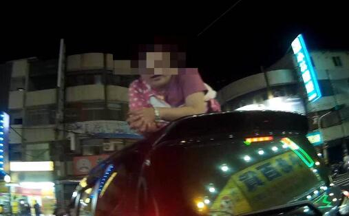 接報而來的警方,從遠處就看到阮女“大”字形地站在車頂,“什么事啦,下來啦,你這樣不好看啦”、“你要不要先下來說”,但不管警方如何勸說,阮女都急躁拒絕并要求“叫我老公過來”,更趴在車頂持續與警方、車主僵持……