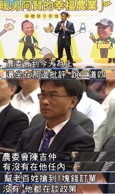 吳子嘉在節(jié)目中表示,當(dāng)韓國瑜在拼命推銷高雄的農(nóng)漁產(chǎn)品時(shí),民進(jìn)黨當(dāng)局主管農(nóng)業(yè)事務(wù)的“農(nóng)委會(huì)”卻在拼命扯后腿,而“農(nóng)委會(huì)”自己卻沒有為臺(tái)灣老百姓拿到1分錢的訂單。
