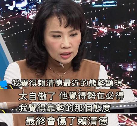 陳鳳馨認為,現在的賴清德“太自傲了”,這種勢在必得的態度反而最終會傷到他自己。