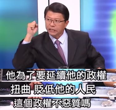 陳明通說,“人不只是為了生活而已,人如果只求溫飽,和豬狗禽獸有什么差別?”誒,這就奇怪了,身為百姓的父母官,人民要吃飽飯、顧生活的基本權利在這個貨的嘴里,怎么突然變成了豬狗禽獸?!