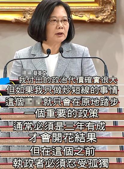 蔡英文聲稱一個重要的政策,通常必須“3年有成”才會開花結(jié)果,“但在這之前,執(zhí)政者必須忍受孤獨”;她接著“訴苦”道,很多朋友認為她很傻,做愈多,被罵愈兇,但她要告訴三年來感到失望的朋友,多一點耐心,就會看見當局“做的事比想象多很多”。同時,她還不忘對三年來不斷唱衰臺灣的人喊話,“你們不會得逞”……