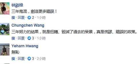 國民黨民代王育敏更用20個字,對蔡英文當局執(zhí)政三年來的表現(xiàn)做了總結(jié):