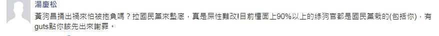 名嘴謝寒冰更回嗆黃國(guó)昌,“按照這種精美的邏輯,你這個(gè)爛貨當(dāng)然也是國(guó)民黨栽培出來(lái)的啊,真要說(shuō)的話(huà),李登輝、陳水扁,蔡英文、‘行政院長(zhǎng)’蘇貞昌,又有哪一個(gè)不是國(guó)民黨栽培出來(lái)的咧?”;臺(tái)北市議員徐弘庭也呼吁,大家別忘了民進(jìn)黨大舉“寄生華航”的狀況,很多跟綠營(yíng)“親密”的華航高層可都與這次的專(zhuān)機(jī)走私有所牽連啊。