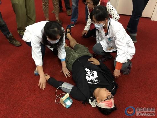 臺灣“東森新聞云”報道指出,臺“立院”當月16日召開“勞基法修法”公聽會,民進黨、國民黨、“時代力量”與親民黨“立院”黨團總共邀了28名代表進場,會議現場氣氛火爆,并發生推擠沖突,已絕食288小時的勞團代表許惟棟不支倒地,隨后被送往臺大醫院。