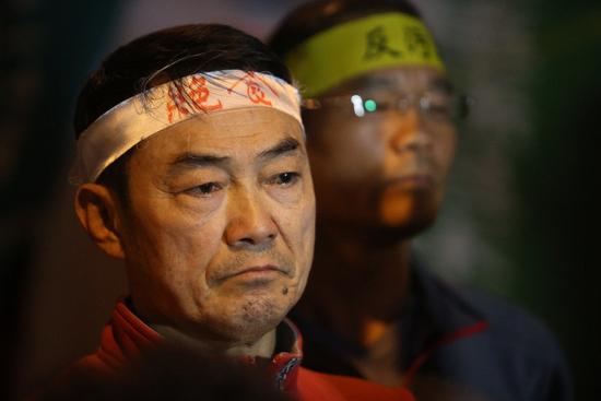 勞團成員以絕食靜坐方式,盼民進黨“立院”黨團能主動撤案。(圖片來源:臺灣《中時電子報》)