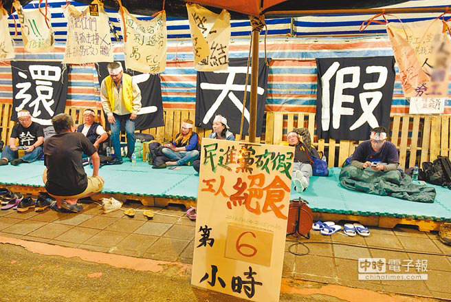 2016年勞工團絕食抗議民進黨當局強行砍勞工7天假。(圖片來源:臺灣《中國時報》)