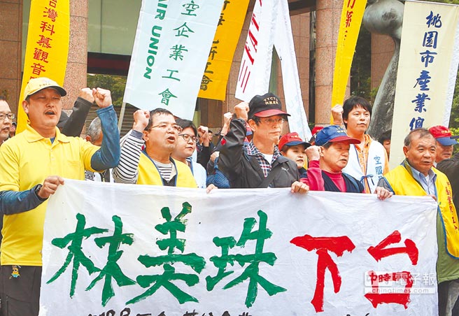 臺鐵等勞工團體因向勞動部門申請不當勞動行為裁決遭到駁回,20日集結在勞動部門抗議,要“勞動部長”下臺。(圖片來源:《中國時報》)