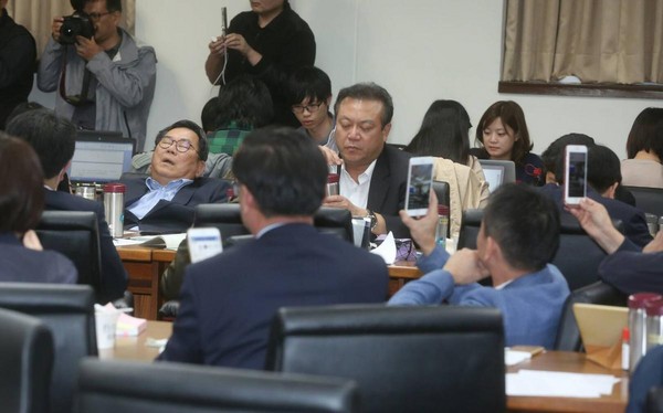 民進(jìn)黨與國民黨昨日都發(fā)布甲級動(dòng)員。據(jù)臺灣《中時(shí)電子報(bào)》報(bào)道,會(huì)議室一早就被動(dòng)員的“立委”、聯(lián)席會(huì)官員、各家媒體塞滿,有“立委”反應(yīng)沒有位置坐。“時(shí)力立委”徐永明一開始就占據(jù)質(zhì)詢臺不走,要求更換更大的會(huì)議室。