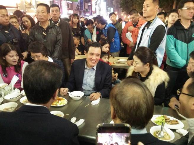 馬英九跨年夜到六合夜巿吃海產粥。(圖片來源:臺灣《中時電子報》)