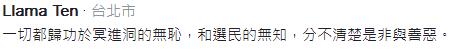 臺灣網(wǎng)友也紛紛為馬英九平反。有網(wǎng)友指出,馬英九始終沒改變,卻出現(xiàn)評價的“起,落,漲”曲線。他分析,原本的“起”是民眾覺得他好(民眾喜歡,就會自己找理由)。“落”則是被綠營當(dāng)做靶,一天三餐誣蔑“抹紅”,讓成了綠營的靶的馬英九千瘡百孔。“漲”不是托誰的福!是馬的正確對比出蔡的錯誤!不是對比出蔡的菜!是她上任半年就錯誤百出,被民眾看出來了!不是蔡突然變菜,是綠營從頭到尾,從開始到現(xiàn)在,說的做的都是“錯”的。在上臺后,綠營一切的錯,被馬英九的正確一一逼顯出來了!
