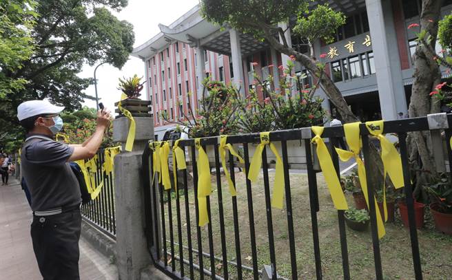 臺當局“教育部”外被綁滿黃絲帶。(圖片來源:臺灣《中時電子報》)