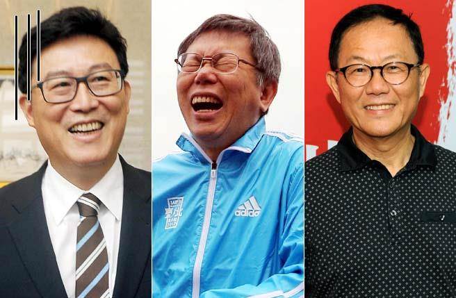 姚文智(左)、柯文哲(中)、丁守中(右)。(圖片來源:臺灣《中時電子報》)