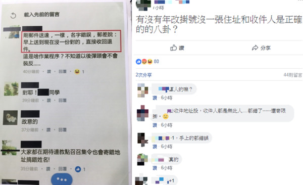 這波烏龍受害者還有許多郵差,“年改掛號信沒有一張住址和收件人是正確的”,陳姓郵差抱怨說,送“國防部”寄出的掛號信,全部收件人都是查無此人,白忙一整天,浪費人力也白花不少掛號郵票錢,這些都是納稅人的血汗錢。