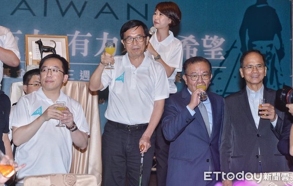 陳水扁與其子陳致中等政要,出席“凱達(dá)格蘭基金會(huì)”13周年感恩募款餐會(huì)。(圖片來(lái)源:臺(tái)灣“東森新聞云”)