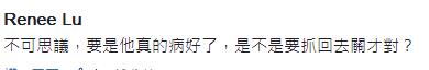 網友也對陳水扁所提的“公投”表示極大質疑:“‘公投獨立’過與不過,臺灣人能否承受此過程?‘公投’過,是否愿意為臺灣‘獨立’而上戰場?或‘公投’不過‘獨派’是否自此噤聲?你信綠蛆嗎?我不信!”“‘公投’可以抵抗大陸?我覺得‘公投’把貪污犯送回監牢比較實際。”“用‘公投’來對抗大陸!只有貪生怕死不要臉的‘臺獨’才說的出這種下流無恥的言論!”“一個貪污犯猖狂到這個地步,臺灣竟然無人可管。要這個‘政府’,要這個‘司法’干什么”,還有網友表示,請“公投”貪污的陳水扁,不得假釋、不得保外就醫,不得“大赦”,直接關到死!