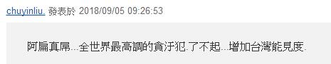 也有網友諷刺,這就是“臺灣之光”“全世界最高調的貪污犯”。