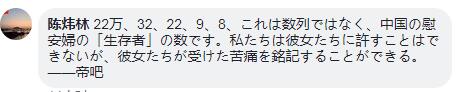 有網友留言向日本喊話:你們對慰安婦還沒正式道歉跟補償。中國人民不介意讓這件事成為國際對日本慰安婦的撻伐先鋒!