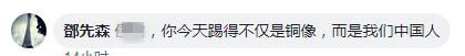 有網友留言表示:你今天踢的不僅是銅像,而是我們中國人!