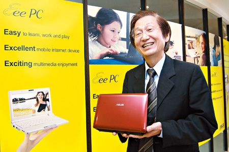 華碩董事長施崇棠手持最新的Eee PC系列。 圖片來源:臺灣《中國時報》