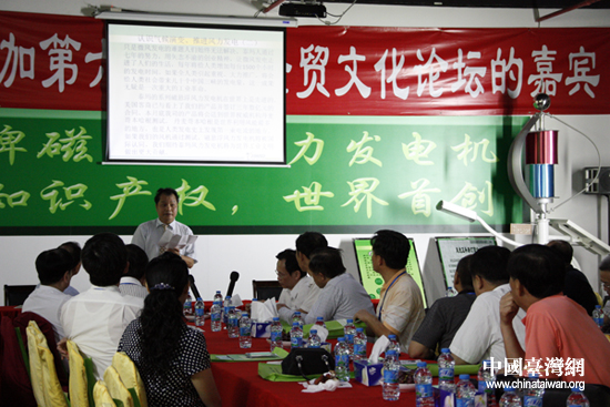 參會代表在研發(fā)出世界第一臺磁懸風力發(fā)電機的深圳泰瑪風光能源科技有限公司參訪座談(中國臺灣網 李徽 攝)