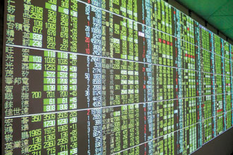 受到道瓊指數(shù)狂跌引發(fā)全球股災(zāi),臺北股市早盤狂瀉470點,熒幕顯示版整片綠油油,股民哀嚎。圖片來源:臺灣《聯(lián)合晚報》