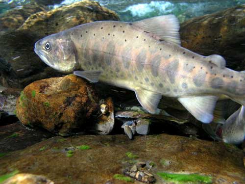 常年棲息在臺中縣七家灣溪的櫻花鉤吻鮭是臺灣特有物種,也是瀕臨絕種的保護物種。它們因為外表帶有桃紅色不規(guī)則云斑,形似櫻花,深受人們喜愛。