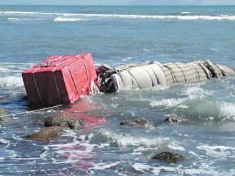 2003年失聯(lián)魚雷數(shù)小時(shí)后被發(fā)現(xiàn)躺在利澤海邊,海軍人員以棉被包住魚雷,確保安全。來源:臺(tái)灣《聯(lián)合報(bào)》