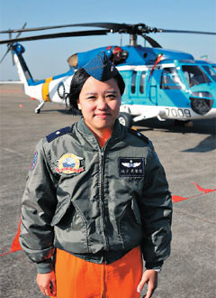 該女性飛行員為趙雅惠,為臺空軍少校,本次展示她將駕駛S-70C表演滯空吊掛。她曾在今年10月間臺風環流的的惡劣氣候條件下,駕駛小救生艇一口氣吊掛起15位船員。趙雅惠在今日上午接受采訪時表示,新竹基地上空側風很強,“就好像臺風”,她為了這項表演任務練的全身疼痛。她強調到時吊掛的是真人,“不容閃失”。