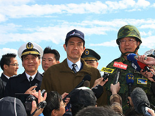 臺軍1月18日在臺灣屏東的“九鵬基地”舉行大規(guī)模導(dǎo)彈演習(xí),數(shù)枚導(dǎo)彈目視未命中目標(biāo),馬英九親自校閱后稱,“不是很滿意”。圖片來源:臺灣“中央社”