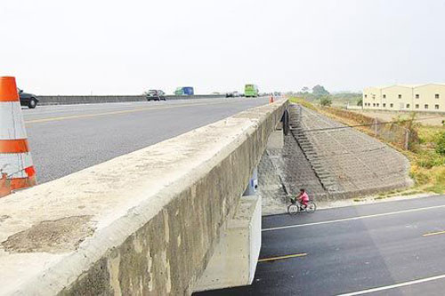 配合臺軍11日起5天的“漢光”實兵操演,中山高封閉車道移除中央RC護欄,凈空成為戰機跑道。麻豆戰備道設有從平面道路攀上高速公路的臺階,不過軍演當天將管制,不容閑雜人等進入演習場地。 圖片來源:臺灣《中國時報》