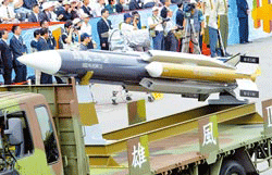 臺軍研發的最新武器“雄風三型超音速攻艦飛彈”,在6月份的試射過程中脫靶凸槌。圖片來源:臺灣《中國時報》