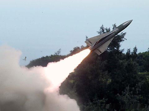 臺軍三軍聯合實彈射擊,發射鷹式飛彈。圖片來自臺媒