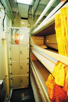 據報道,由于潛艇內部空間不足,基層官兵住艙分隔成上下四層,甚至是多人共享的“熱鋪”。一般水面艦官兵可到甲板吹吹風、運動,或者抽煙解癮;潛艇官兵不但無處可去,而且因為水下作戰極度強調靜音,必須避免任何會制造噪音的動作。