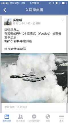 美為臺(tái)灣飛機(jī)進(jìn)行空中加油,畫面珍貴,網(wǎng)友莫不直呼經(jīng)典,趕緊收藏,并有數(shù)百人按贊肯定。