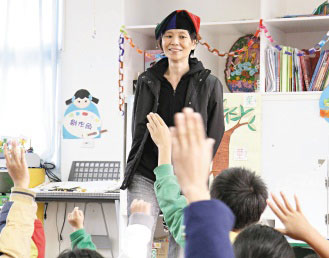周美青昨天在為月眉小學童說故事時,偶爾還會請小朋友當小幫手,幫忙搬道具或接著講故事,也隨時給小朋友鼓勵。有小朋友天真地問周美青,“周阿姨你為何那么喜歡幫助人?”她以和藹語氣回答:“每個人都有助人的天性呀。”