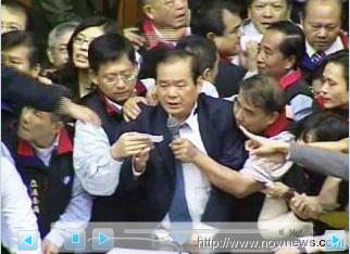 主持議事,臺灣“立法院副院長”曾永權眼鏡被扯掉。圖片來源:臺灣“今日新聞網”