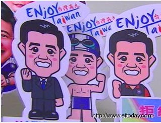 據報道,馬英九長住行程走到哪,都會出現幾個熟面孔。這些學生帶著自制的馬英九外圍商品,只送不賣,挺馬挺到底。