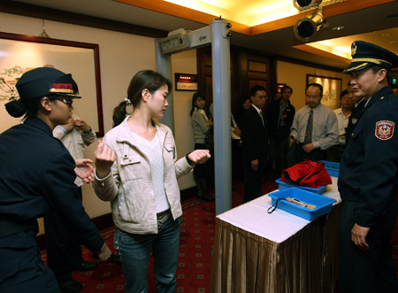 據臺灣“中時電子報”報道,陳水扁出席活動之前,所有與會人員在會場外大排長龍,等候接受安全檢查。由于陳水扁自爆全家遭恐嚇,安檢規格等級提高,要求所有來賓不但要主動打開背包,還要脫下外套給安檢人員驗看,強制接受安檢。
