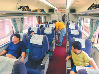 據(jù)了解,這趟行程源起于“監(jiān)委”慕南回郵輪列車之名,由“監(jiān)院”排定日期,但郵輪列車是不定期推出,加上臺(tái)鐵不敢怠慢,才派出最高級(jí)的商務(wù)彩繪列車。商務(wù)車基本配備為3節(jié)客車車廂,加上1節(jié)有卡拉OK設(shè)備及1節(jié)可提供餐飲服務(wù)的客廳車。客廂是三排椅、1節(jié)有33個(gè)座位,另兩節(jié)車廂可提供27個(gè)位置,全車共126個(gè)座位。