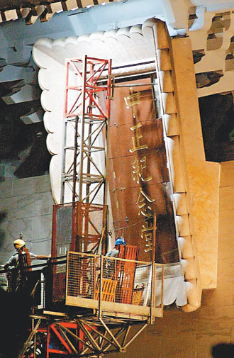 “中正紀念堂”的牌匾全部掛回。(圖片來源:臺灣《聯合報》)