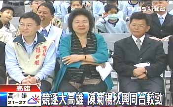 中國臺灣網12月14日消息 民進黨籍高雄市長陳菊、高雄縣長楊秋興今天聯袂出席天主教樞機主教單國璽新書發表會,雙方互動微妙成為媒體矚目焦點。